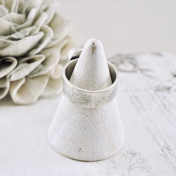 The stone is bezel set on a tapered band that I textured using my silver dust technique, giving it an organic, earthy feel that contrasts beautifully with the polished stone. This ring has a subtle taper, keeping it elegant and comfortable while still bold enough to make a statement.