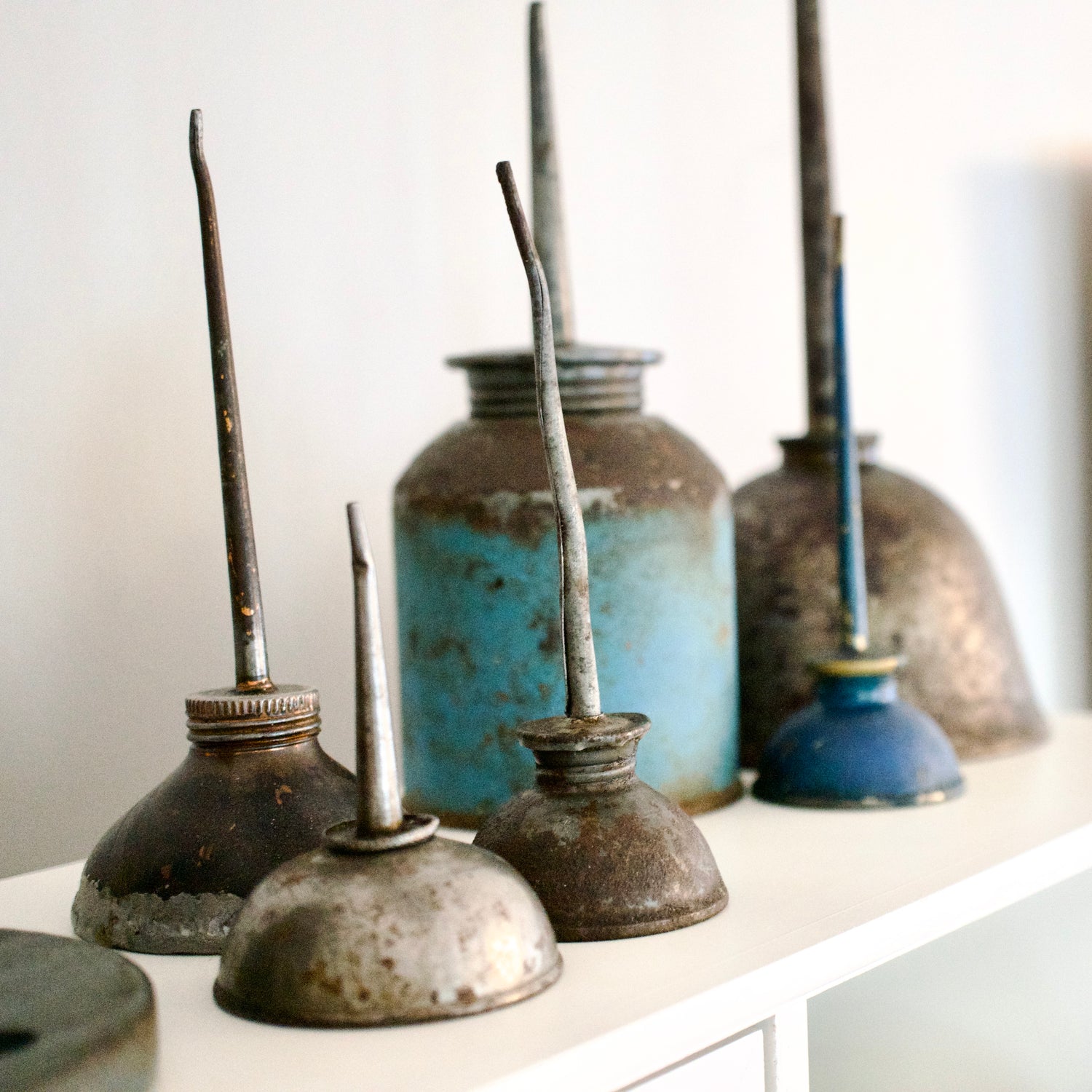 My studio is also home to some beloved vintage finds that add a touch of history and character. I’ve got a little collection of six vintage oil cans that I adore—each one with its own rustic charm. I might have to venture into making one myself one day! :)