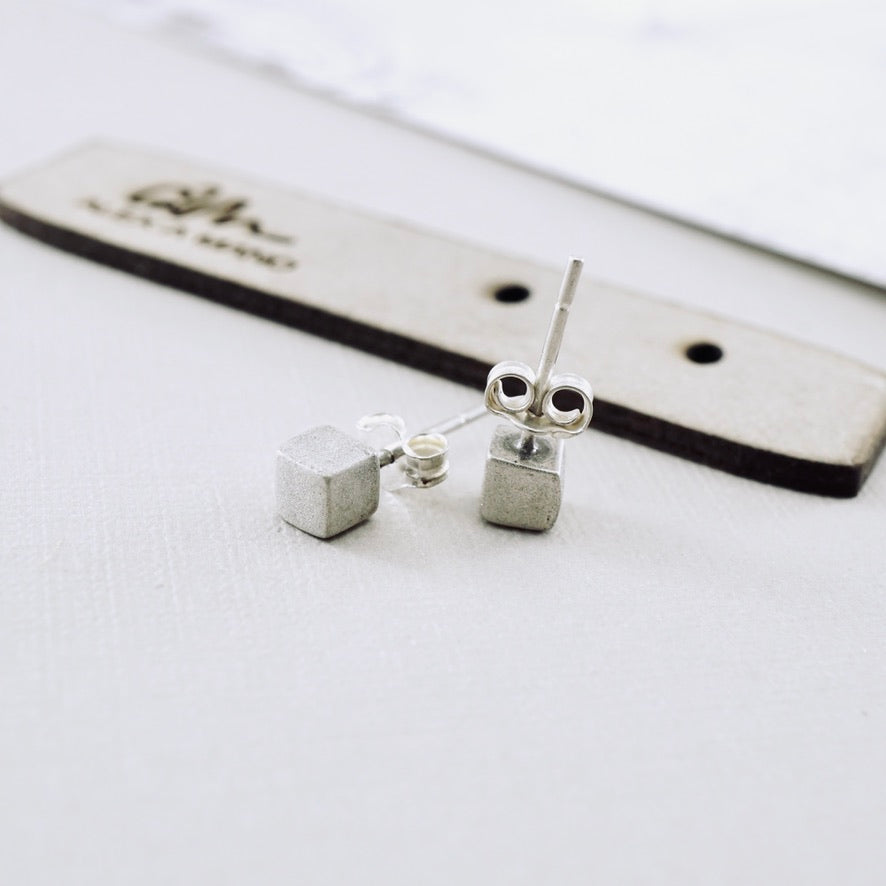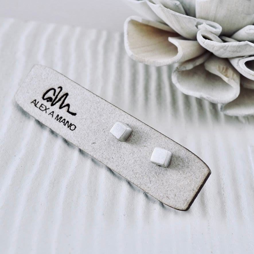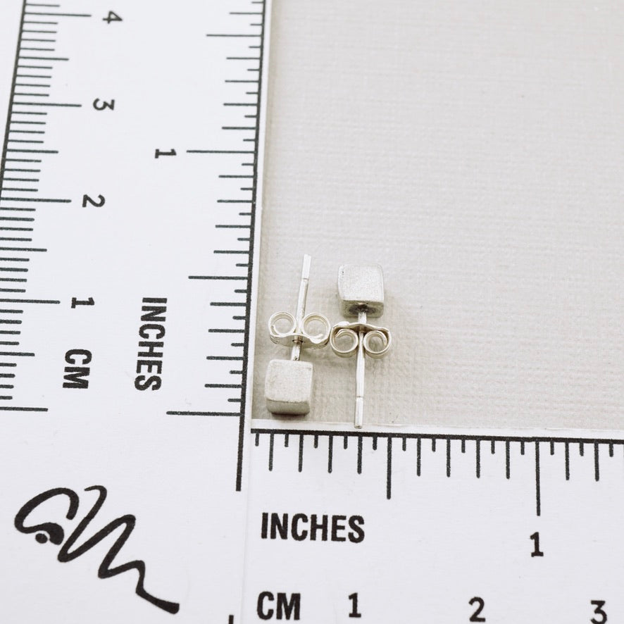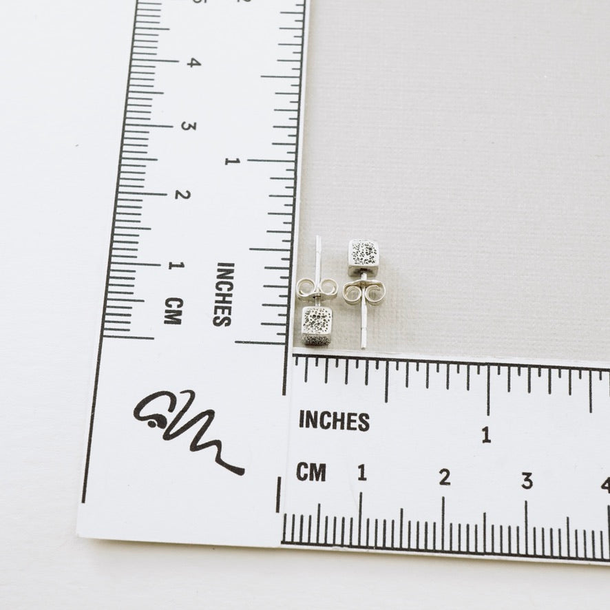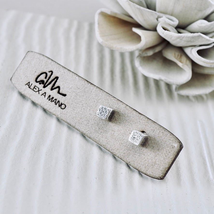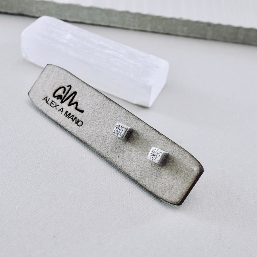 It’s impossible to measure — and in this case, not proportional to its size. Each pair is hand-fabricated in Sterling Silver, available in two finishes: a soft matte sandblasted look or a lightly textured oxidized one.