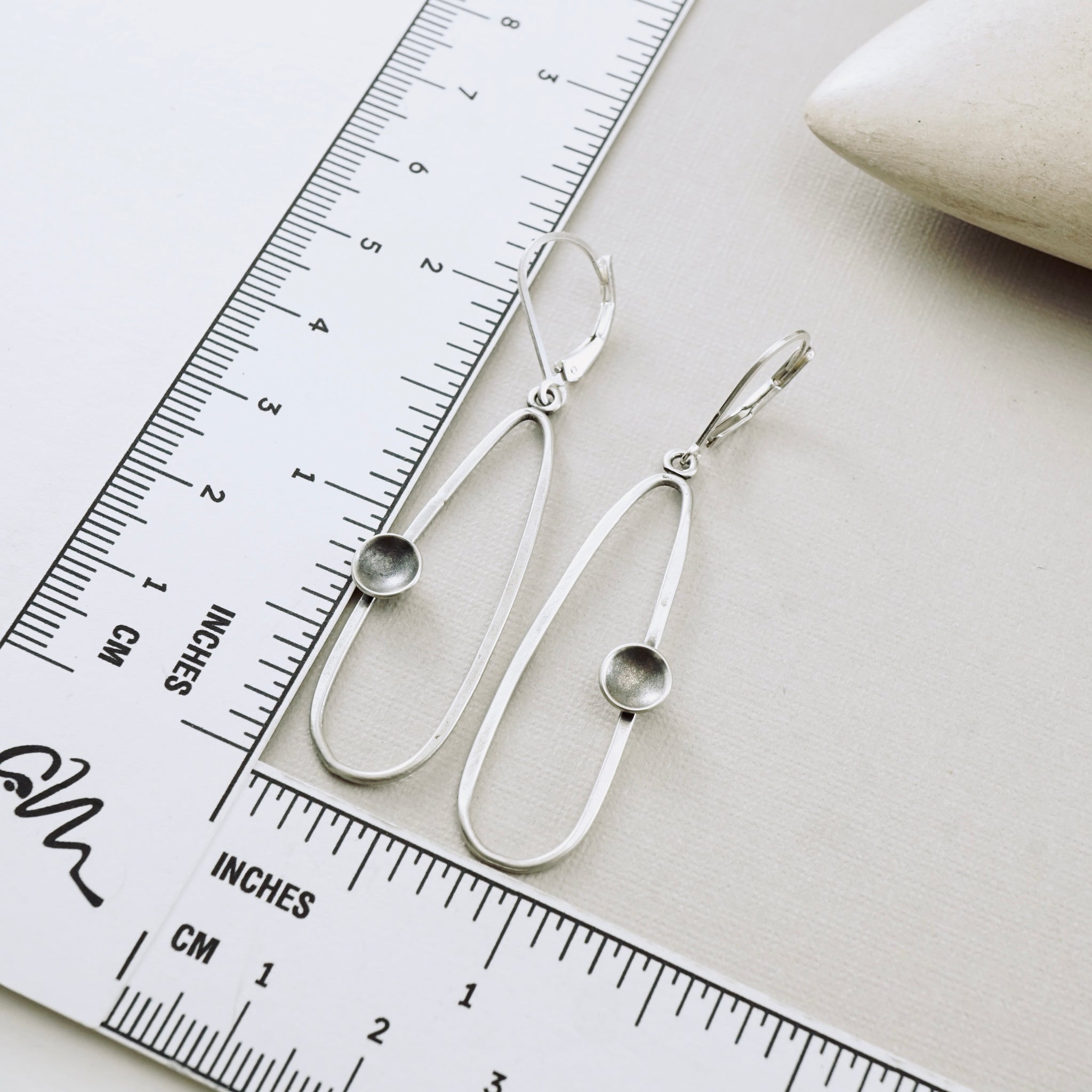 Graceful and refined, these hand-forged Sterling Silver earrings feature elongated loops with softly domed pods that catch the light just right. The lever back ear wires add a secure, polished touch while keeping them comfortable and easy to wear all day.
