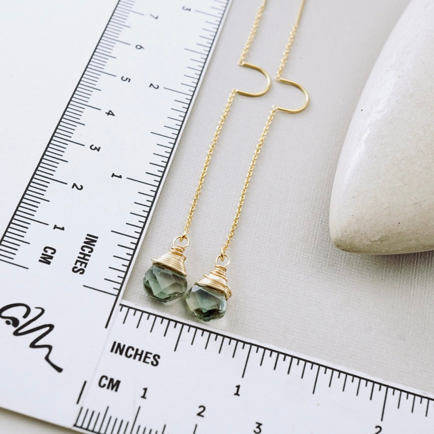 Materials: Faceted green amethyst drops, gold-filled U-link threaders.