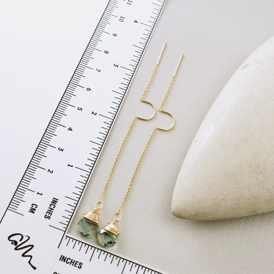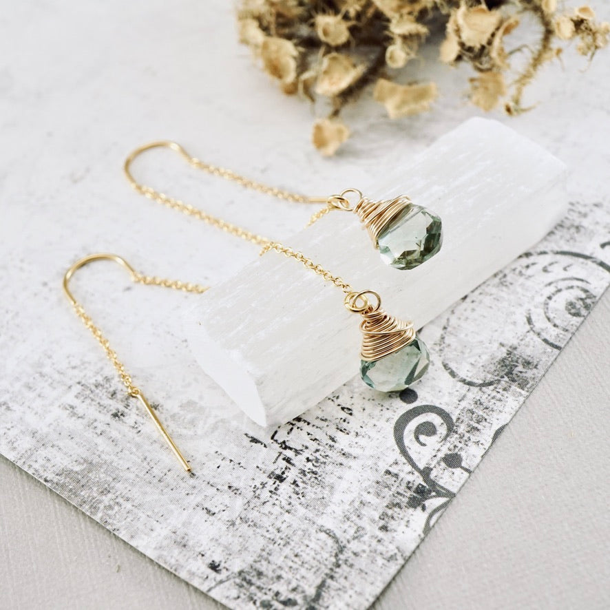 Delicate and refreshing, these faceted green amethyst threaders bring a hint of natural calm and quiet elegance. The U-link style makes them easy to wear and adds a clean, modern touch.
