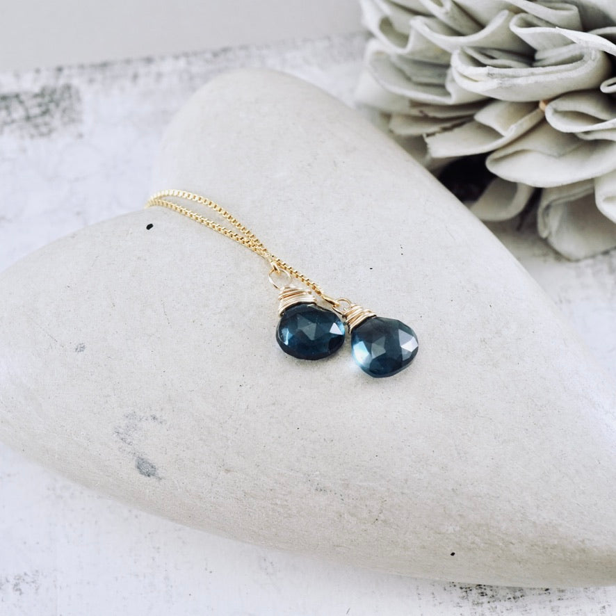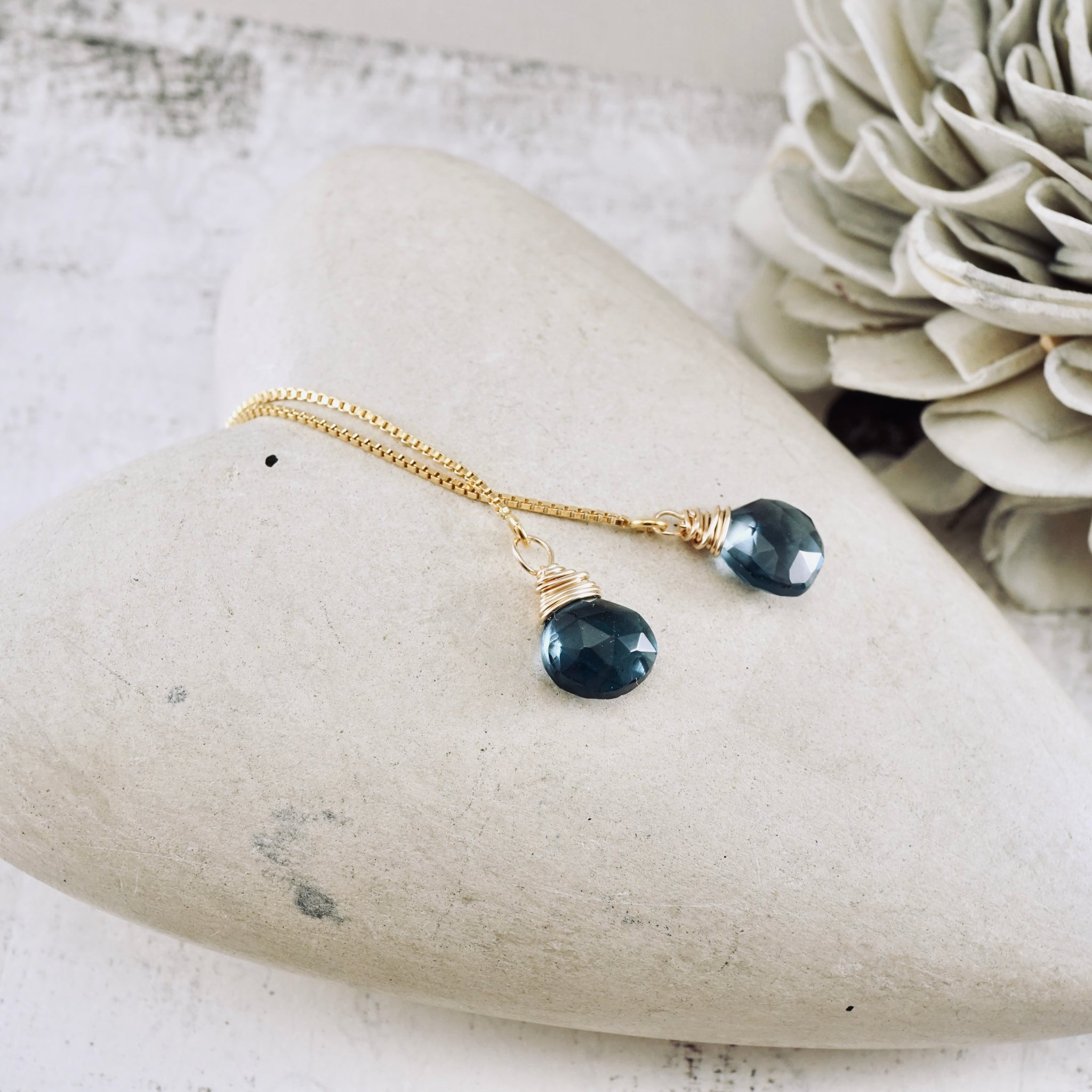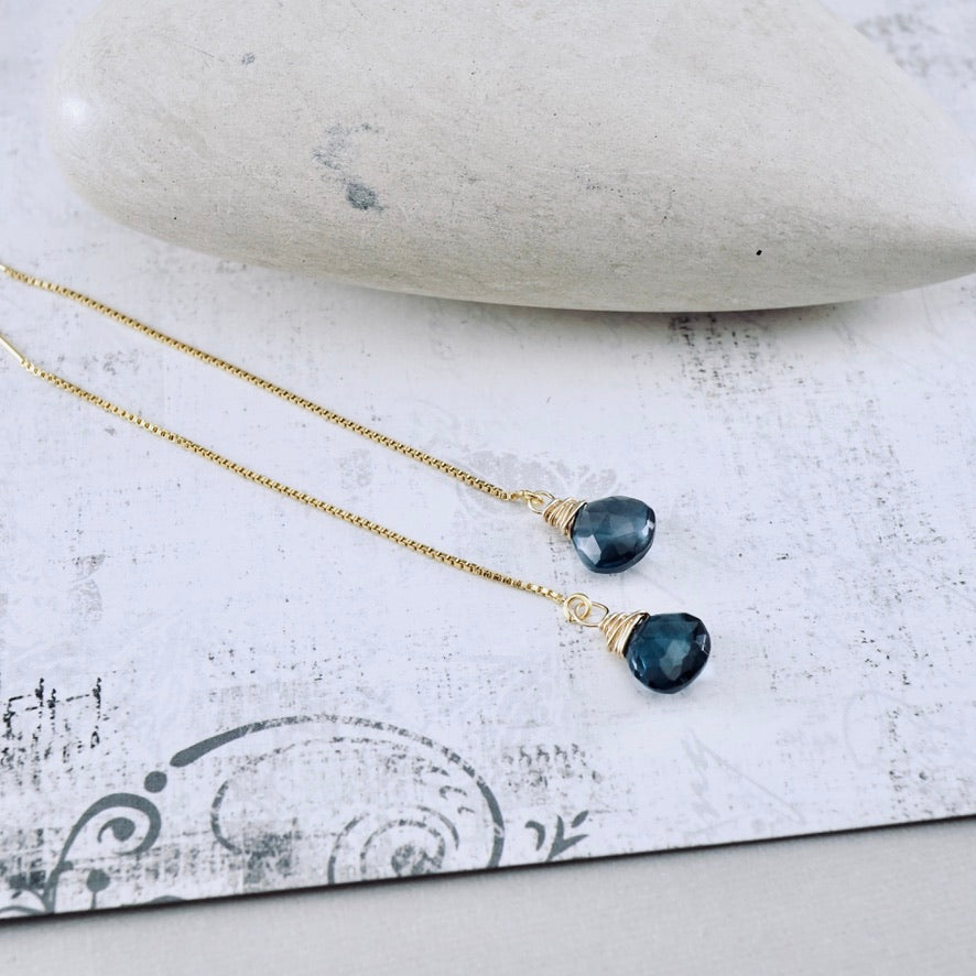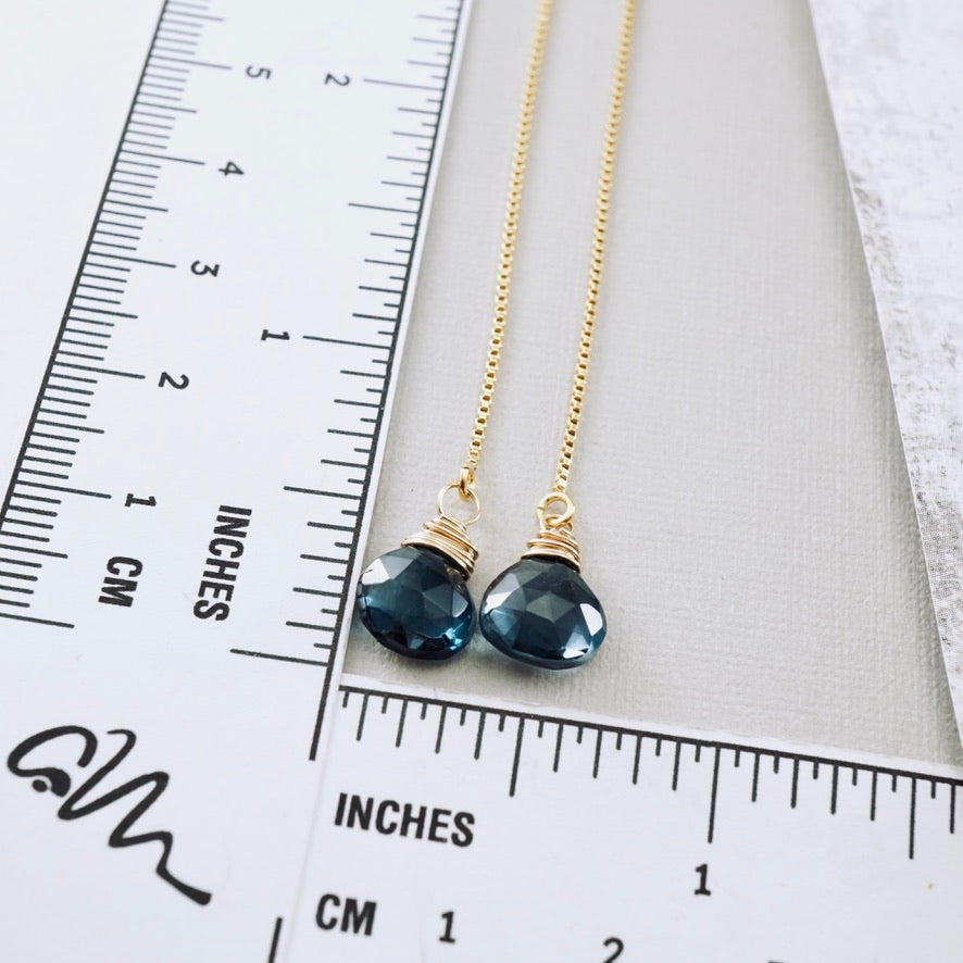 Materials: London Blue topaz drops, Gold-filled box style chain threaders.